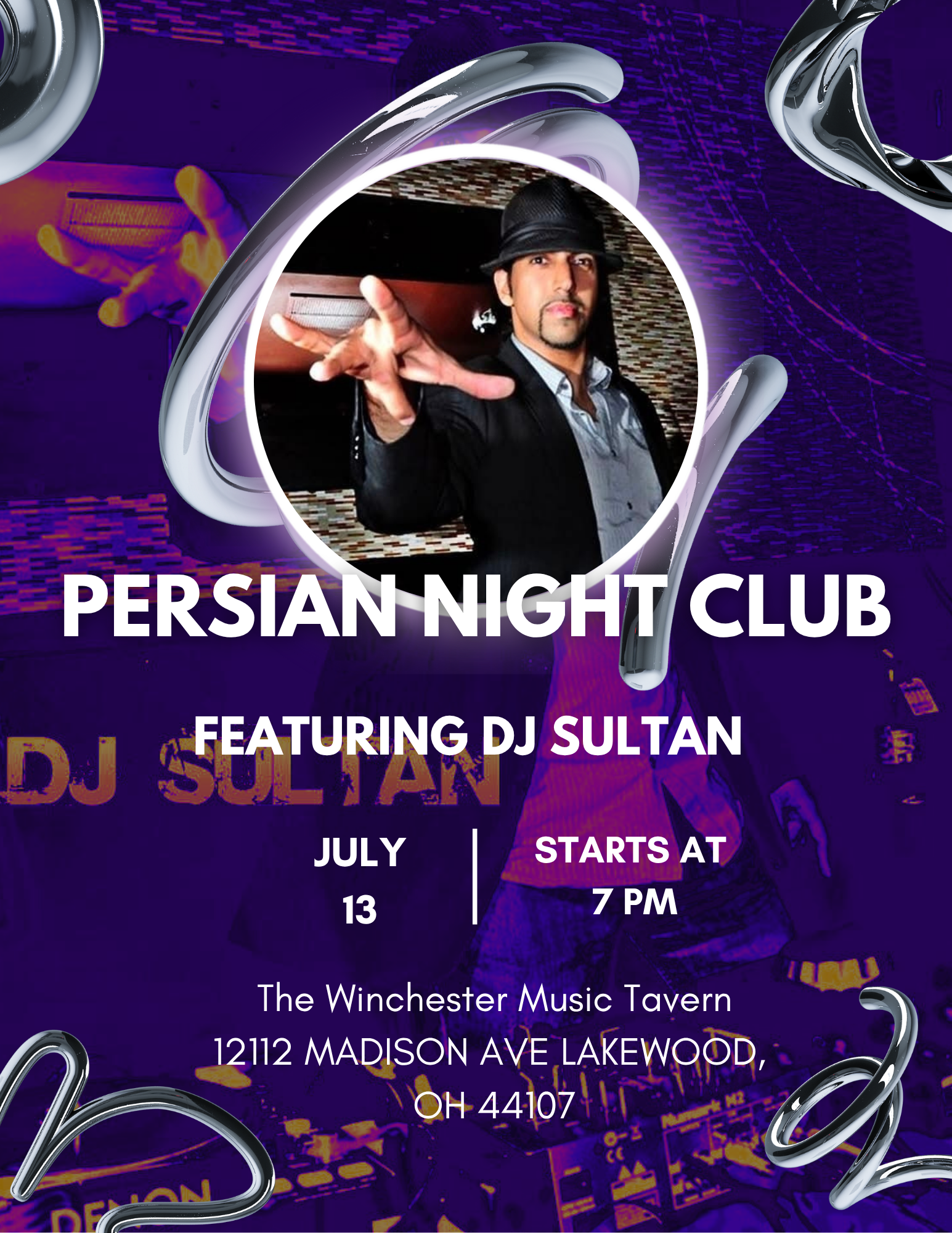 The Winchester Music Tavern 12112 Madison Ave, Lakewood, OH, United StatesDJ Sultan is coming to Cleveland! Get ready for an unforgettable summer night with DJ Sultan! He’s one of the hottest DJs in the Persian party scene – and now he’s bringing the heat to Cleveland!Grab your friends, dress to impress, and dance the night away to the best Persian hits.This is a 21+ event!